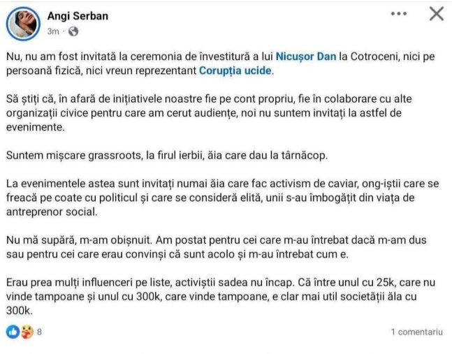 Că au și început nemulțumirile, după ce pulimea activista a aflat că, în comunismul de rit nou, la fel ca în cel de rit vechi, nici tovarășii nu sunt chiar tovarăși, iar unii sunt mai egali decât alții, ei find ăia care doar au bălit la sarmalele prezidențiale.